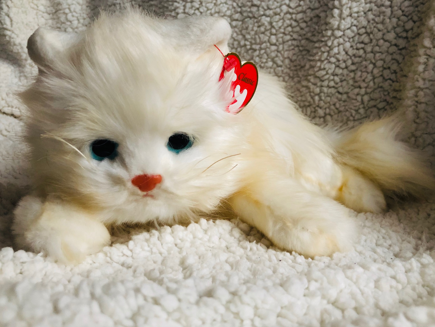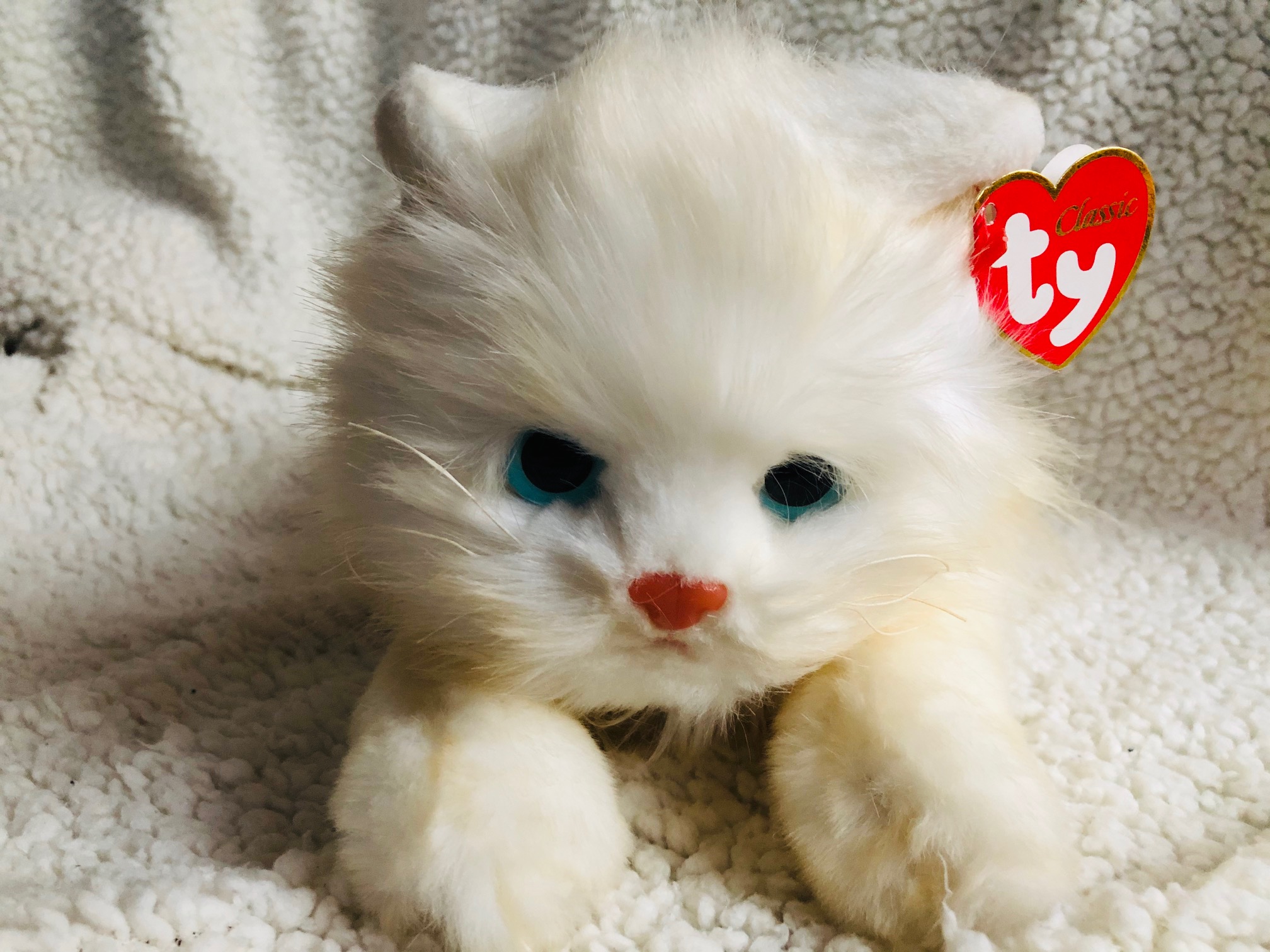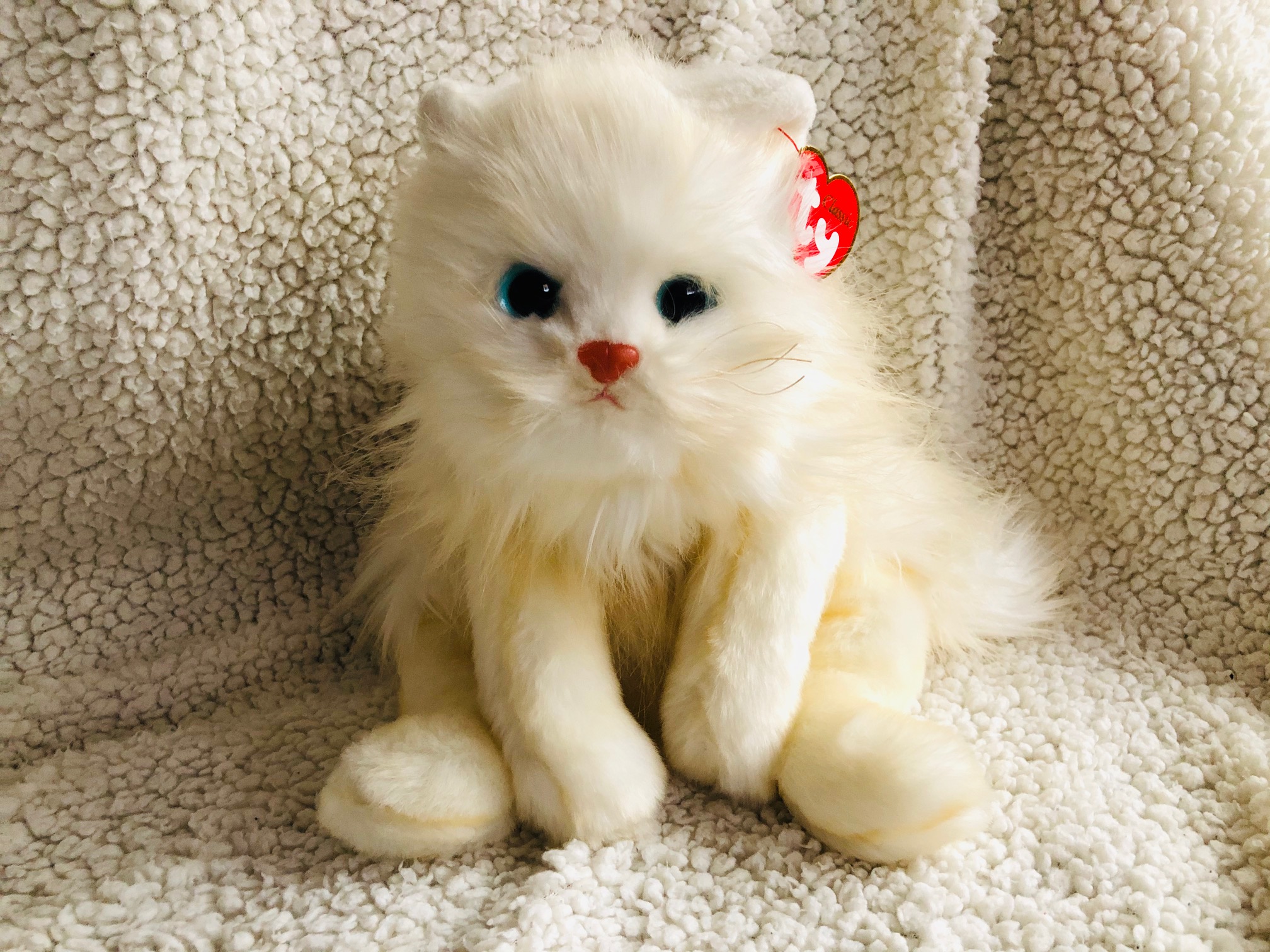 Peachy is from the Ty Classic line and features luxurious white fur, airbrushed with a very light brown to make her fur appear more real. Her fur is longer on her back and tail.