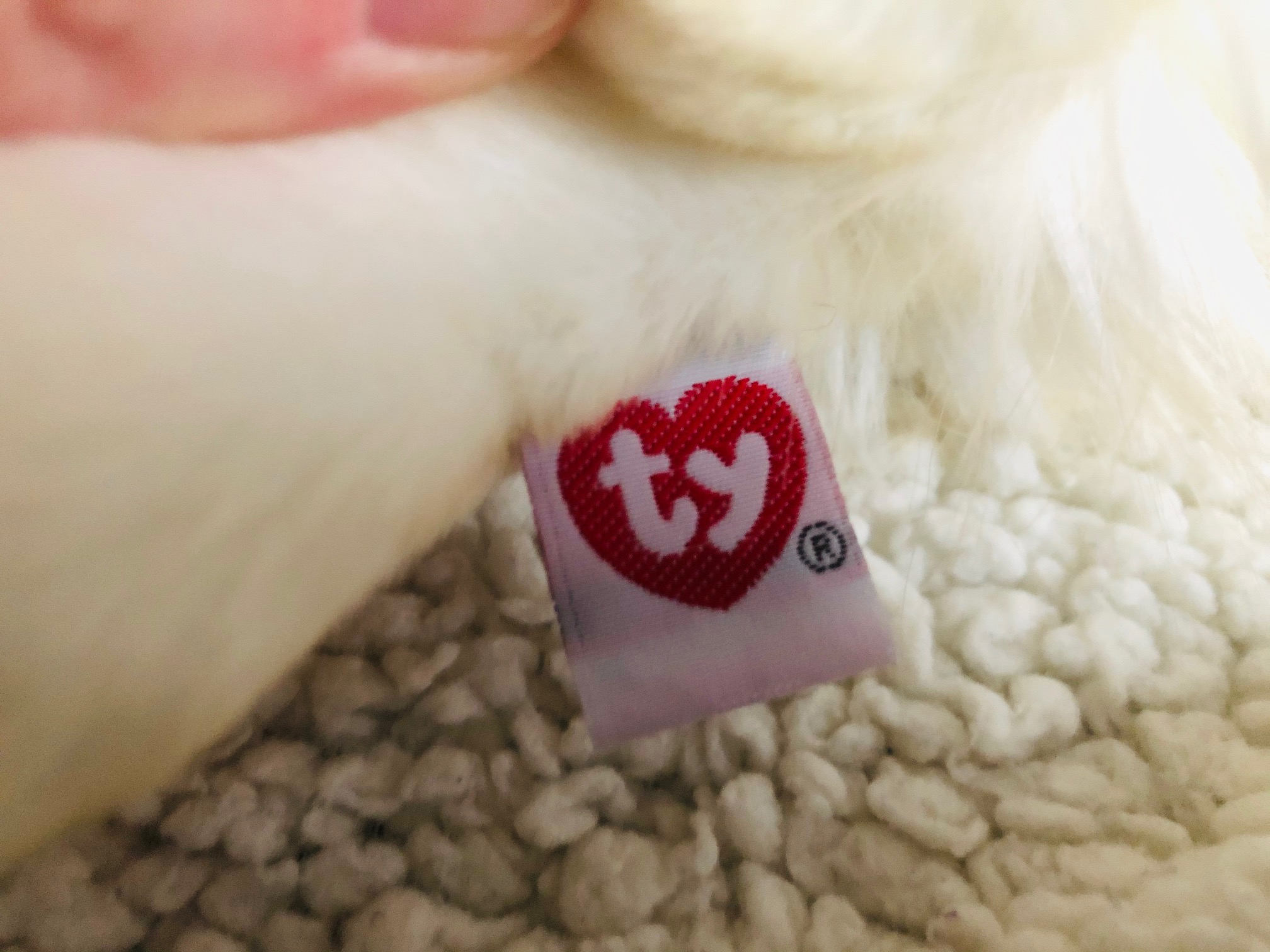 The tush tag is quite simple and doesn’t feature a name like on Beanie Baby or Beanie Boo tags. It is also made from a different type of fabric, with more of an embroidered feel to it.